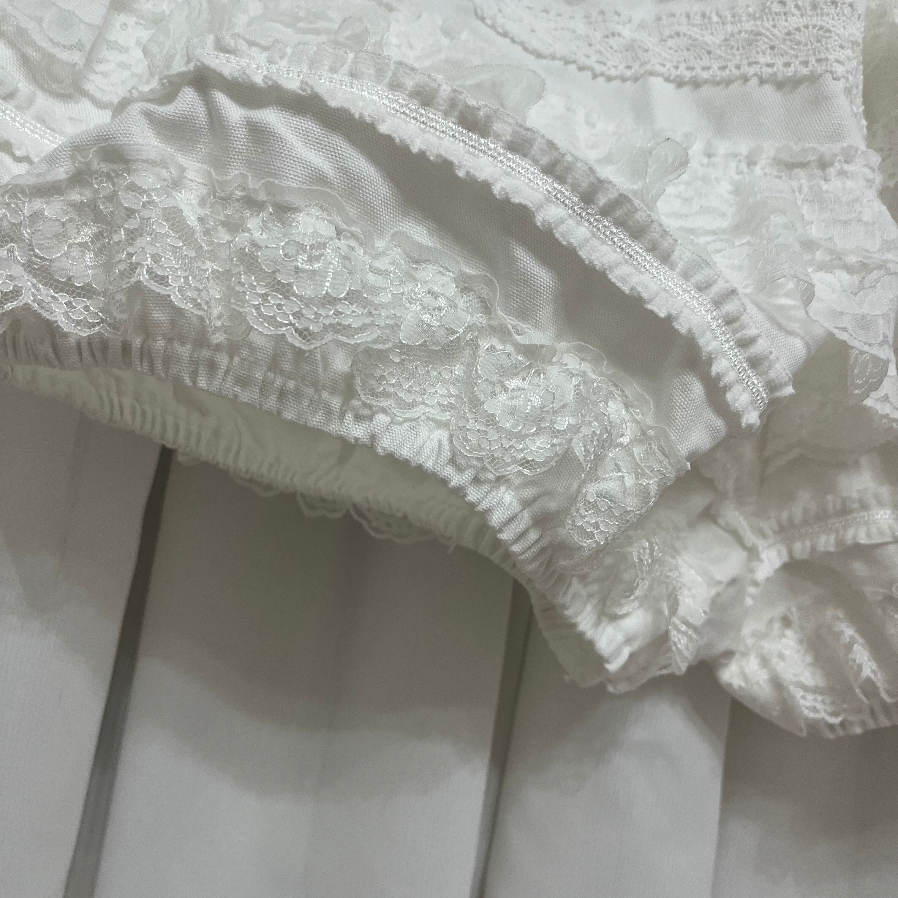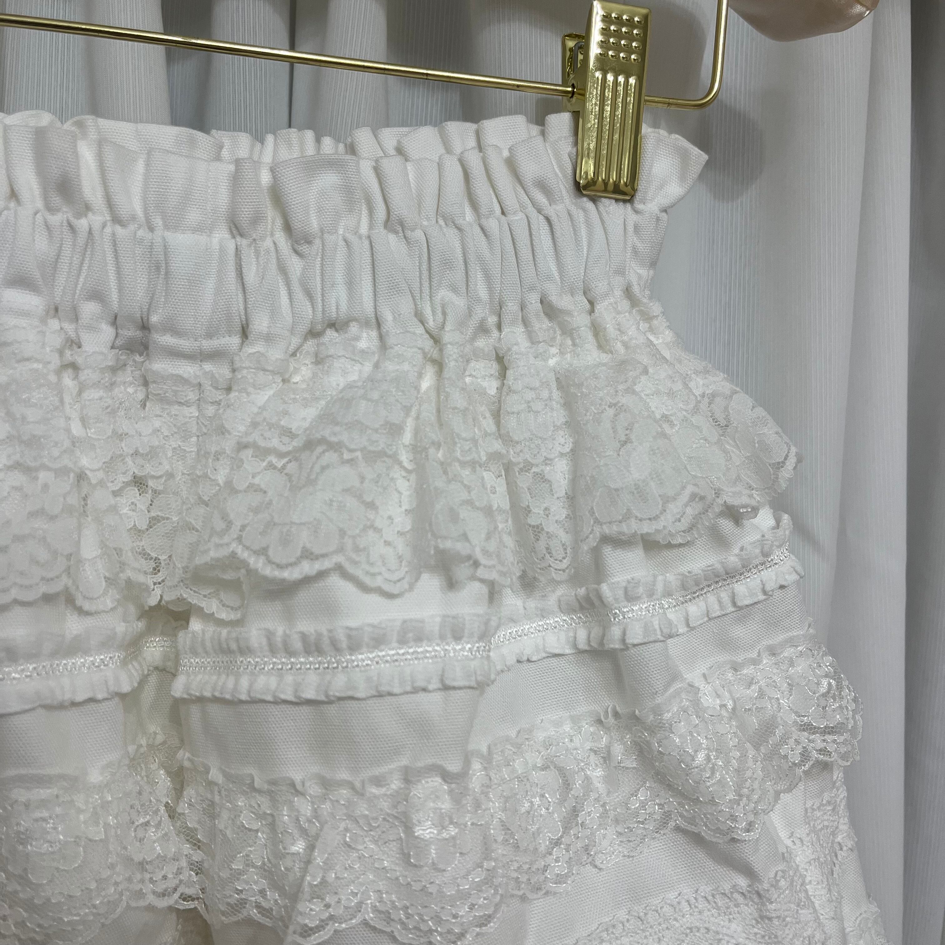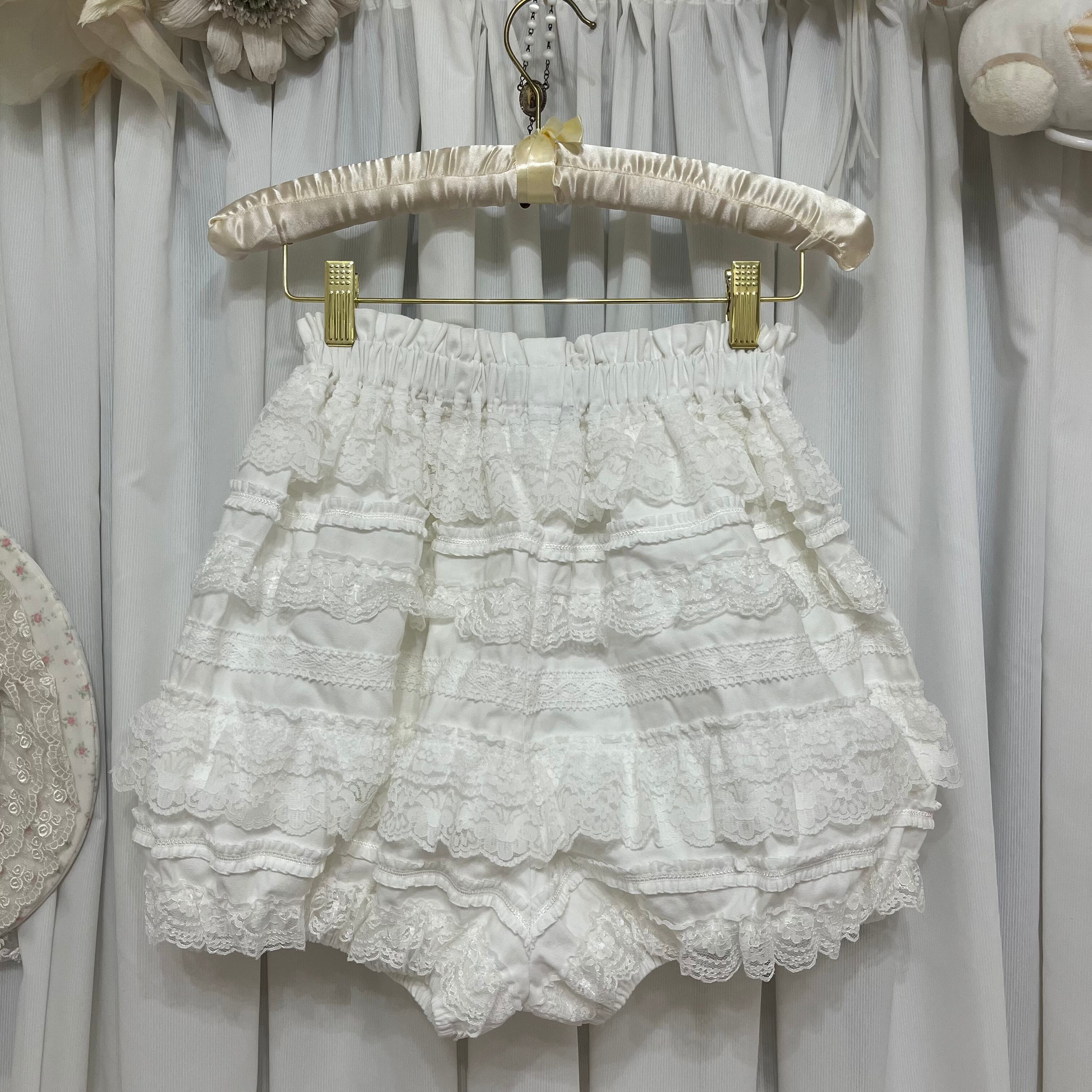 コットン100%の生地にいろんなレースを均等に縫い付けたラブリーなパンツです